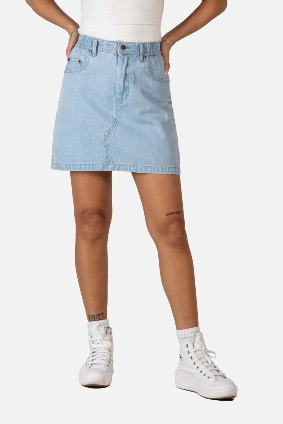 Der Highwaist Women Lolita Skirt ist aus authentischem Washed Denim gefertigt und hat eine reguläre Passform. Abnäher in der Taille betonen die Silhouette des Five-Pocket-Denim-Rocks.
