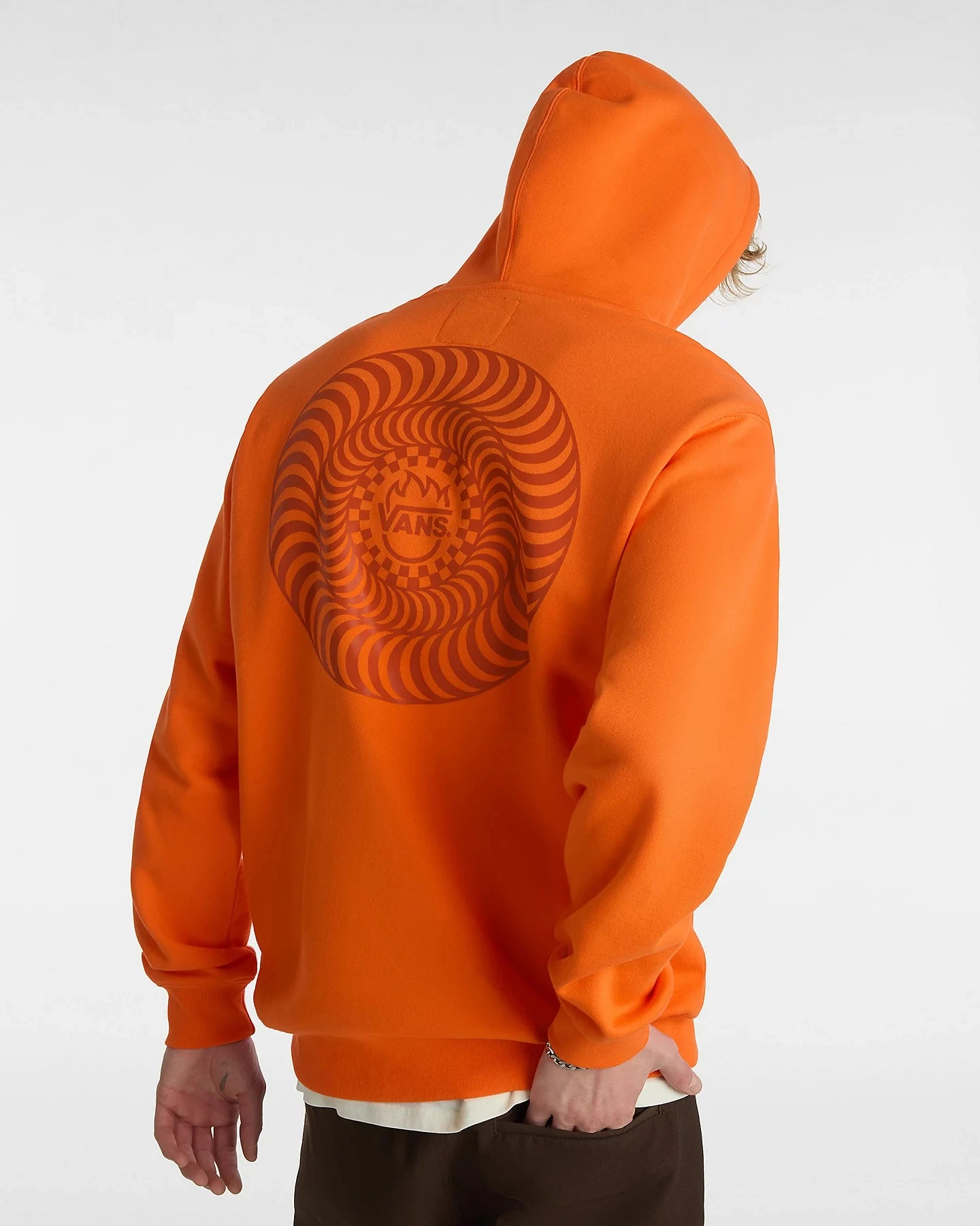 Der Vans X Spitfire Wheels Hoodie feiert unser gemeinsames Streben nach Fortschritt und Abenteuer und verwandelt die Logos beider Marken in ein einzigartiges Emblem, das auf die linke Brust und die Rückseite dieses Hoodies aus Fleece gedruckt ist. Mit seiner Vielseitigkeit ist er die Art von Kapuzenpullover, die du überall tragen kannst. Vans und Spitfire haben das Richtige für dich.
